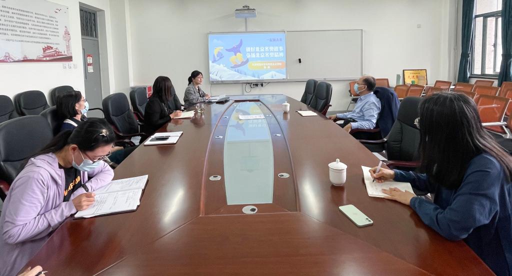 备课会上,思想道德与法治教研室青年教师陈珊以“讲好北京冬奥故事弘扬北京冬奥精神”为题,从“北京冬奥会留给我们什么”“北京冬奥精神的内涵是什么”“北京冬奥精神背后的故事有哪些”三个方面,分享了如何将北京冬奥精神融入思想道德与法治课程的思考和体会。王中良在观摩课程展示后强调,北京冬奥故事蕴含着丰富的育人资源,为上好思政课提供了鲜活的素材,思政课教师要乐于讲时代故事,善于讲中国故事,以讲故事的方式讲深讲透讲活理论,引导青年学生奋进新征程、建功新时代。