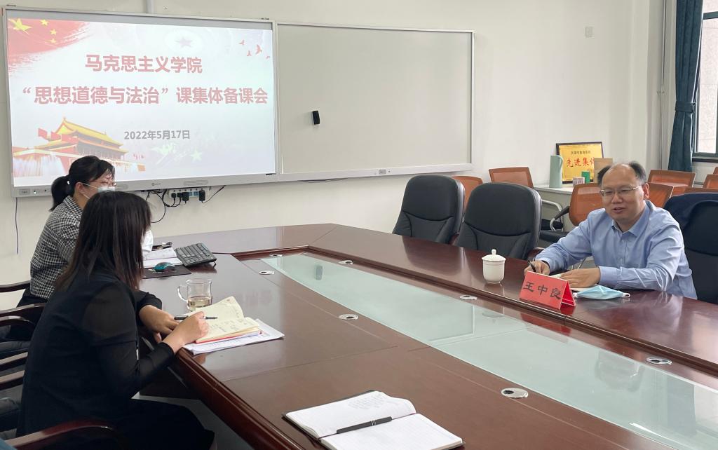 5月17日下午,副校长王中良来到马克思主义学院参加“思想道德与法治”课集体备课,并与思政课教师代表开展座谈交流。学院领导班子全体成员、思政课教师代表参加了会议。