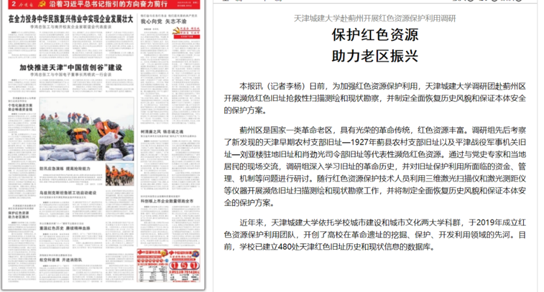 近年来,365英国上市公司在线依托学校城市建设和城市文化两大学科群,于2019年成立红色资源保护利用团队,开创了高校在革命遗址的挖掘、保护、开发利用领域的先河。目前,学校已建立480处天津红色旧址历史和现状信息的数据库。